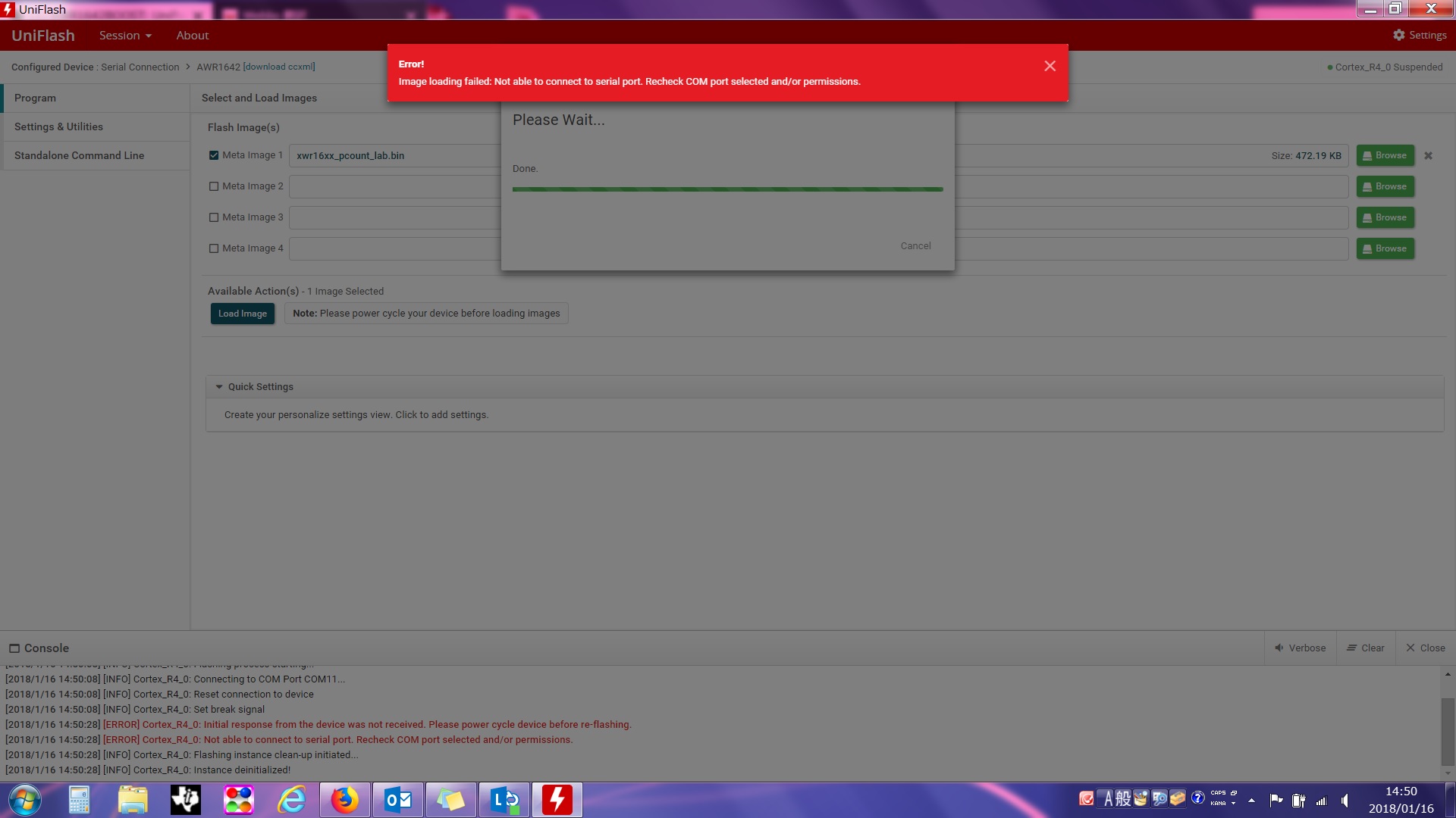 But, uniflash error occurred.