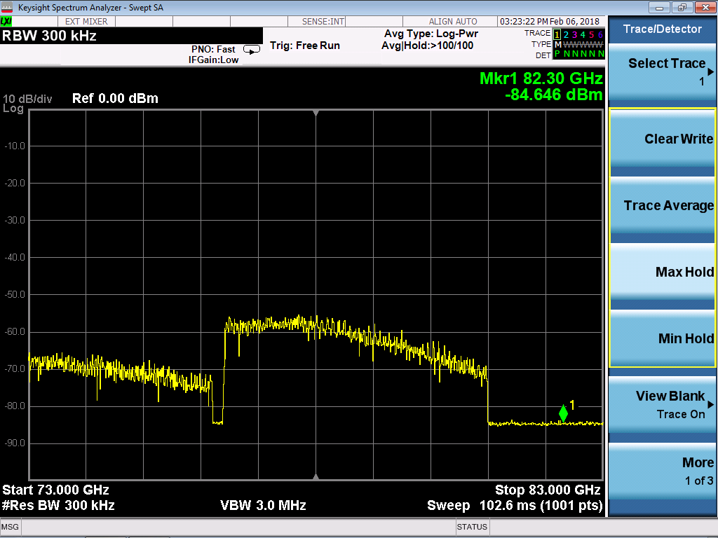 Our customer measured the TX FMCW output with a spectrum analyzer N9010A by Keysight and N1970W Harmonics Mixer by Keysight.