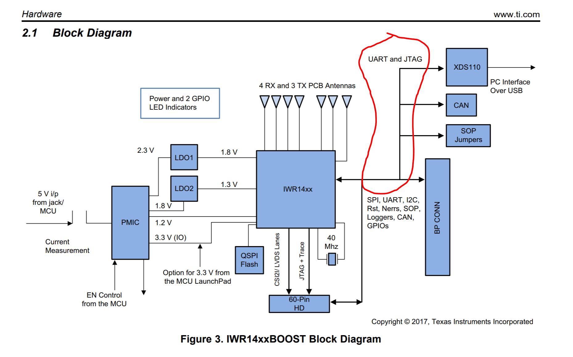 I have been playing around with the IWR1443 High Accuracy Lab and am successfully configuring the device using the CLI and reading the data via a Serial port emulator (CoolTerm). I have been able to change the output baud rate and recompile and still see the correct data. I am now at the point where I need to start integrating this thing into a telemetry project as the end goal is to get rid of the USB-Host (PC) and start interacting with the device directly via 3.3V - 5V Serial (Rx, Tx) or SPI. The end goal for me is to simply write an Energia sketch that would allow me to read the values streaming from the IWR1443 ( or maybe I should say from the XDS110?) as in the High_Accuracy_Lab but over UART rather than USB.
