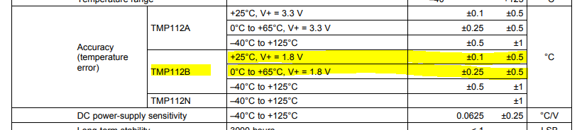 Please you help provide TMP112 Accuracy (temperature error) table @ Vcc=1.8V