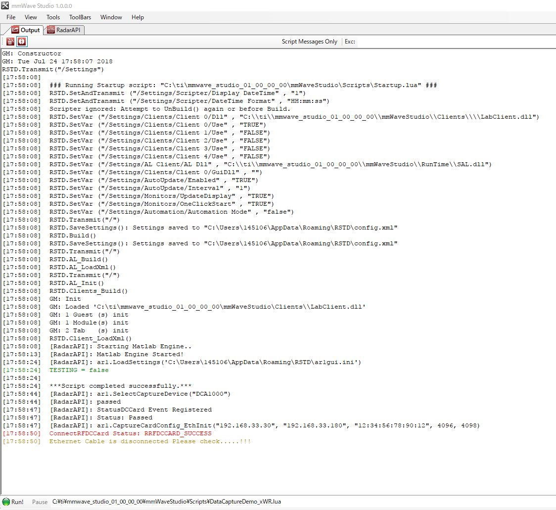 I have hard coded the IP address according to the user guide and connected the Ethernet cable to DCA 1000 EVM.