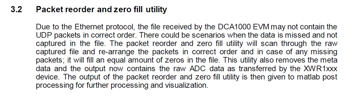 When the ar1.PacketReorderZeroFill(Raw_data_path, adc_data_path, pkt_log_path) command is called, an adc_data.bin file.is created. This file is necessary to use the post processing scripts in matlab.