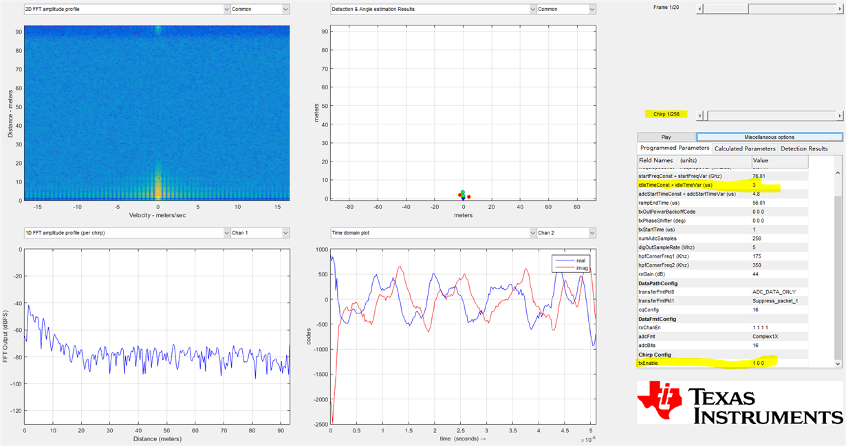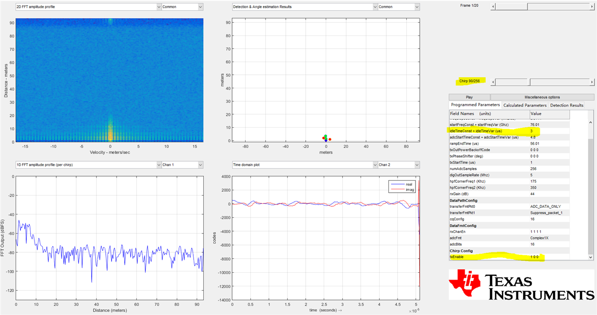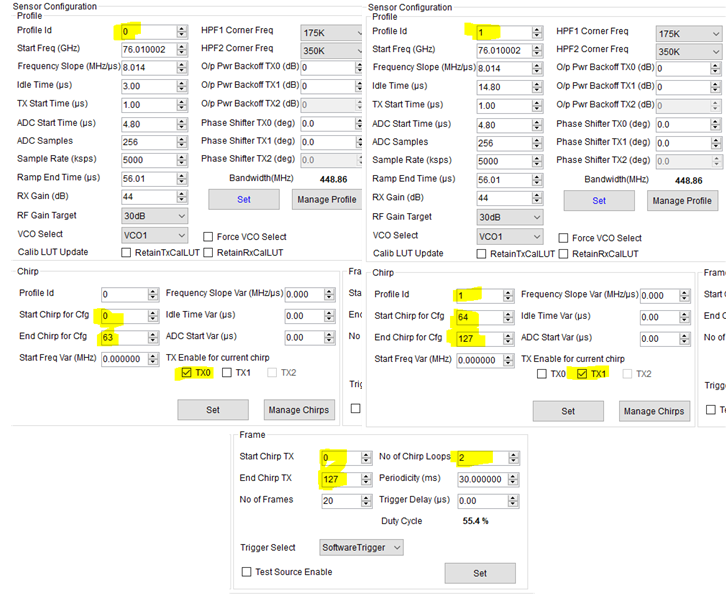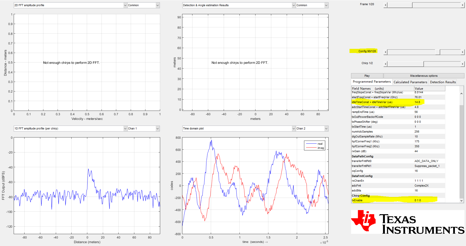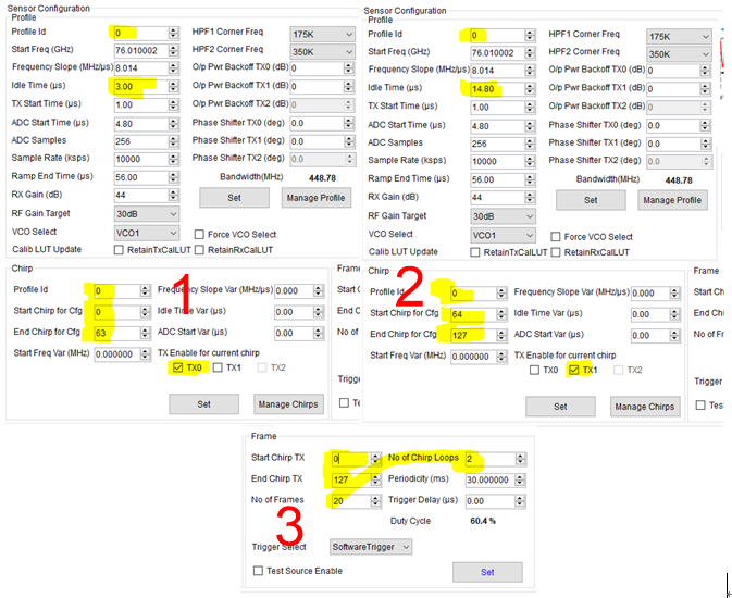 If I first config chirp64~128, and then config0~63, idle time=3us for all the Comfig=X/128.In this case fig 2: plot of Config=1/128 will be right, plot of Config=90/128 will be wrong.
