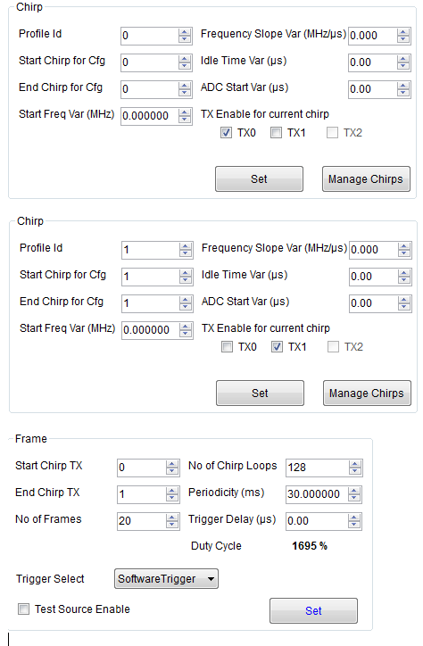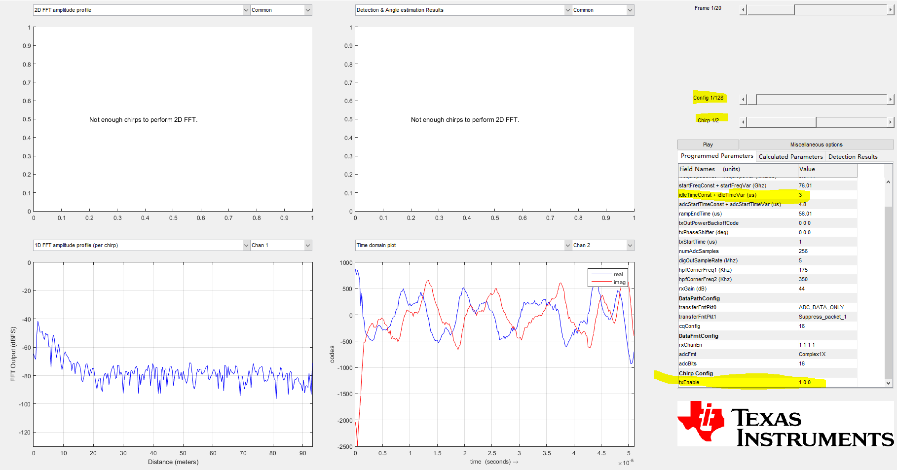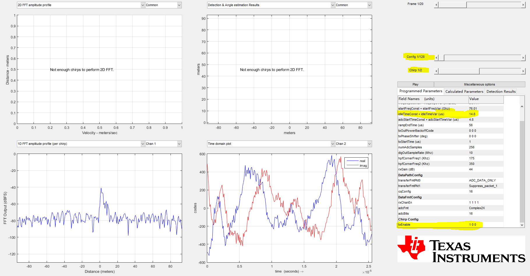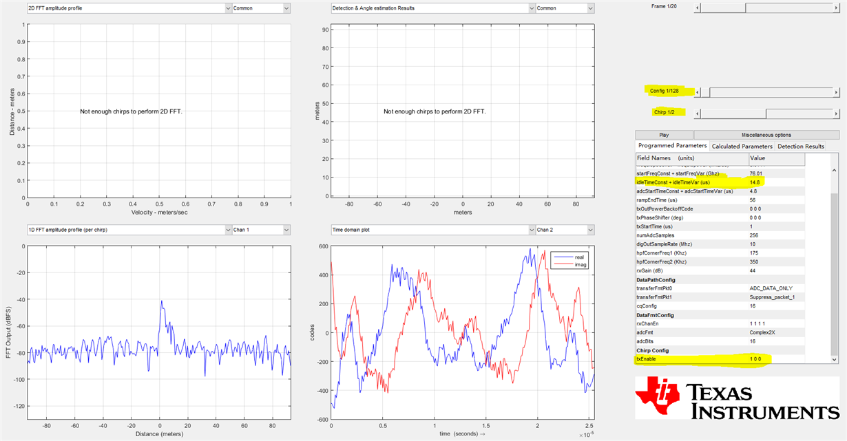 (1)selecting "Chirp configs are processed seperately", Config=1/128, Chirp=1/2