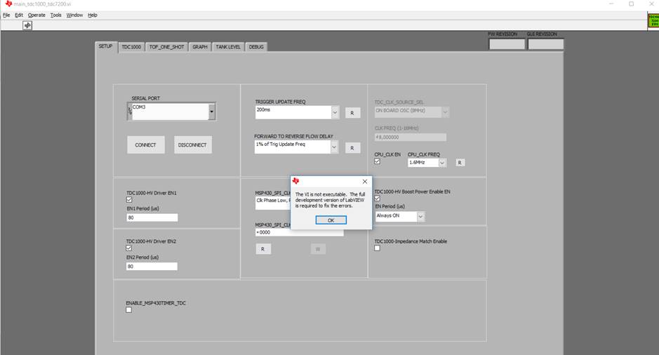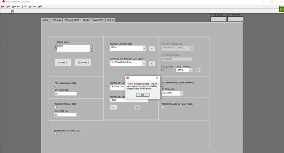 my customer has been trying to communicate with the TDC1000-GASEVM but an error message appears.I'll attach screenshot of the error message.