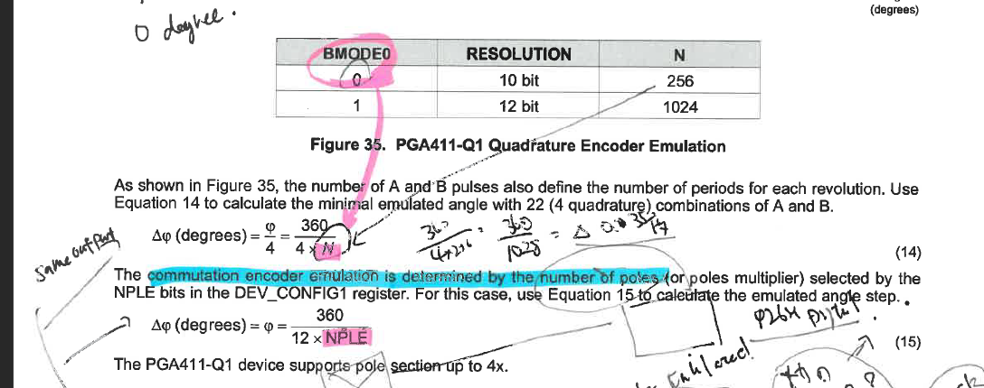 Sorry for bother you. According to datasheet, formula (14) and (15) show same output(delta phi:degree). then, I was confused. how to select delta phi output formula from (14) or (15). or this delta output means "Electrical Angle","Psychical Angle" ?