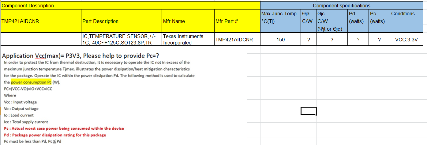 Would you please help for Θja, Θjc, Pd and Pc information under VCC 3.3V case?