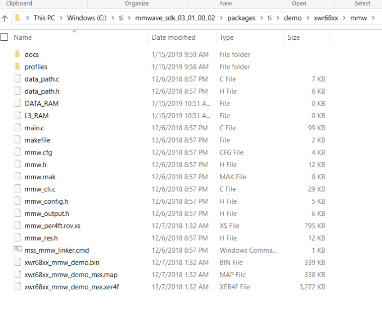 - Power up the mmWave Sensors and load/run the mmW Demo located at mmwave_sdk/_<ver>/packages/ti/demo/<platform>/mmw. Refer to the mmWave SDK user guide in the mmWave SDK package for more information.