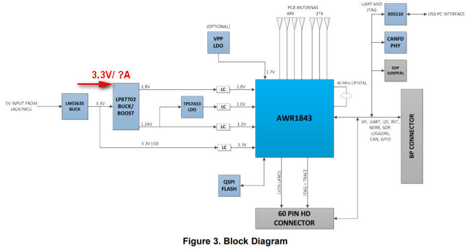 As the AWR1843 reference design used LM53635 for the first buck solution. We want to increase the voltage rating and with spread spectrum function. May I know if the AWR1843 without AOP funciton, does the 1.5A buck could support it? Thanks!