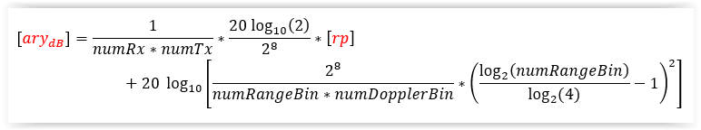This equation clearly deals with dB values but there is no "20log10(rp)" in the formula so I would guess that rp values are dB values from the beginning (2 bytes values from radar).