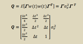 Q is the process noise covariance matrix.And we consider piecewise white noise model for the noise.
