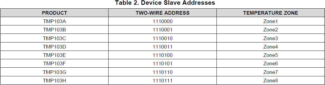 I have a question about TMP103 series temperature ZONE.