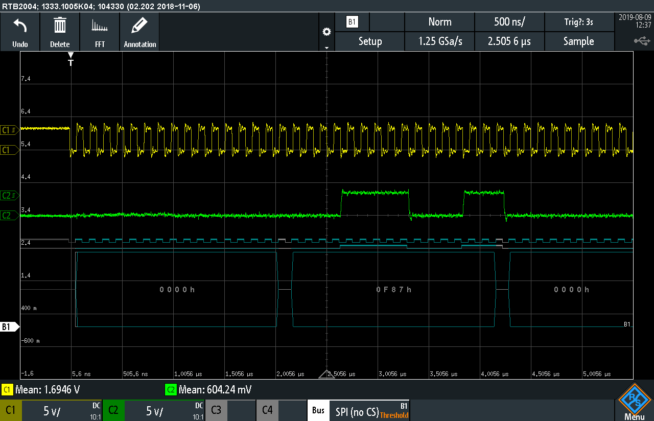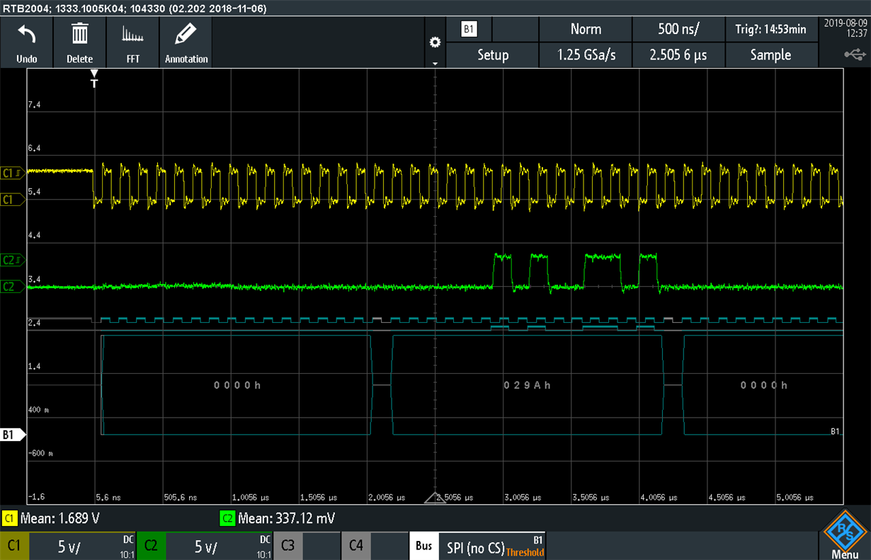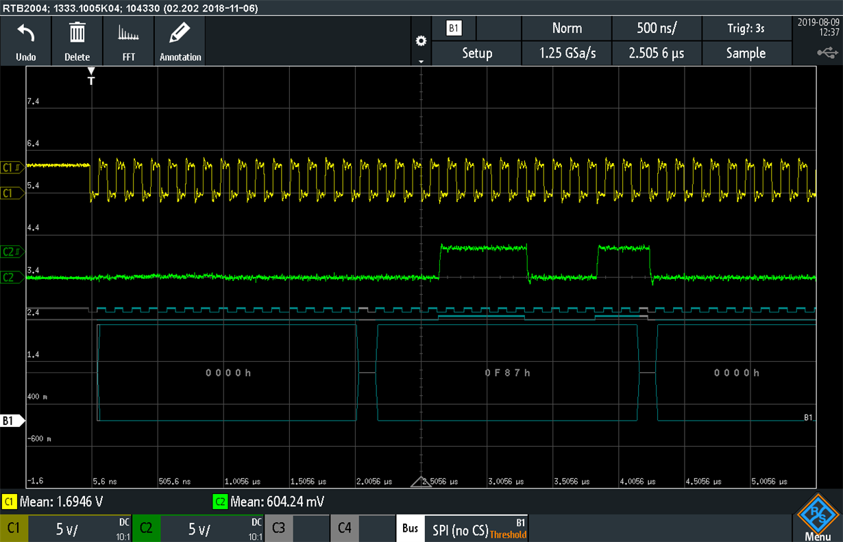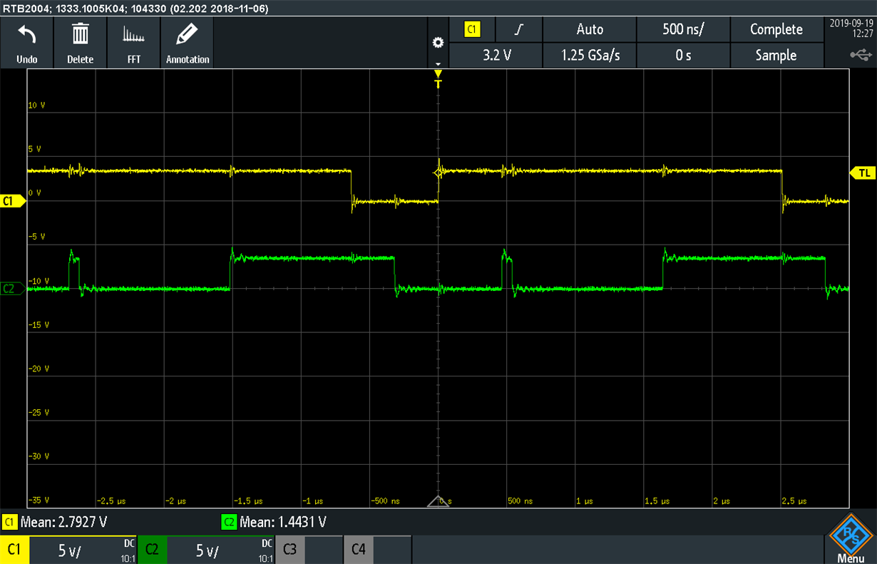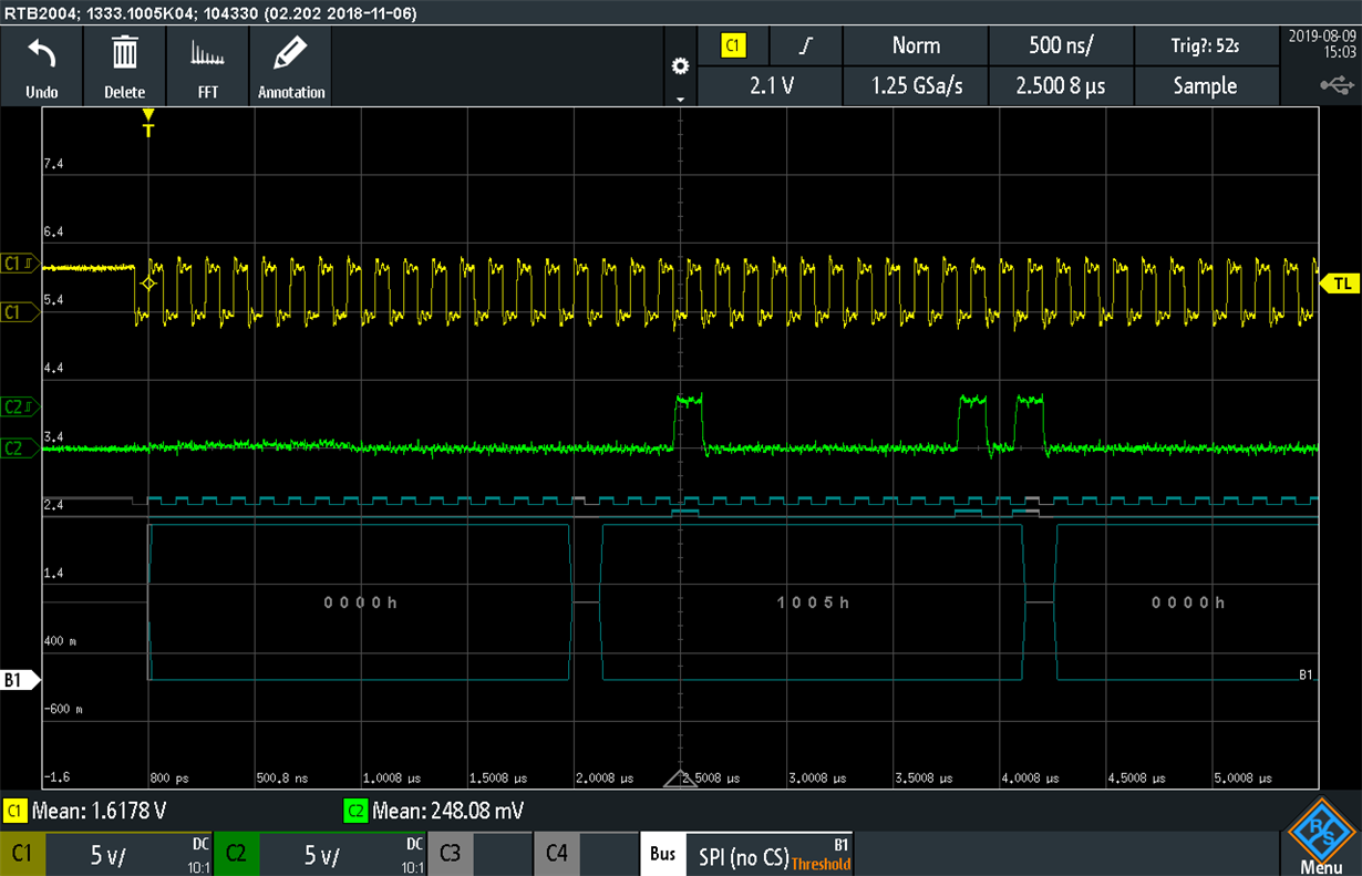 I also checked the 16MHz clock of the TDC and it looks fine. No glitches or noise on the clock.