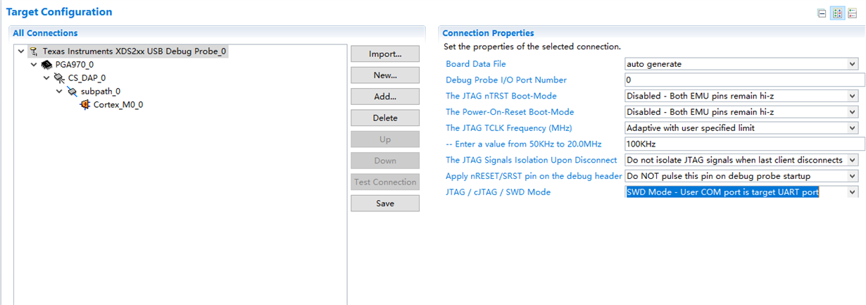 TCK(XDS200 pin 11) ---- SWDCLK (PGA Board pin3)