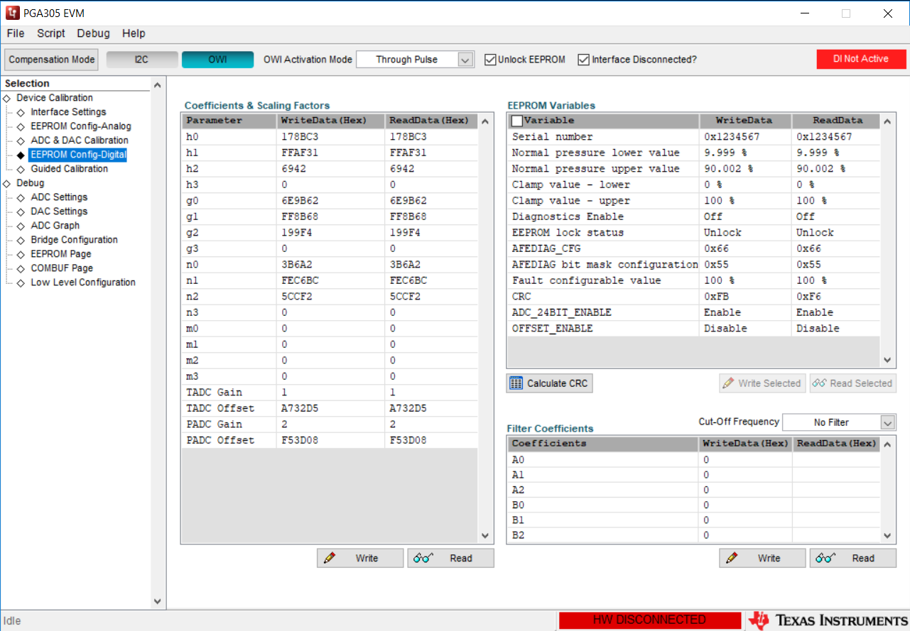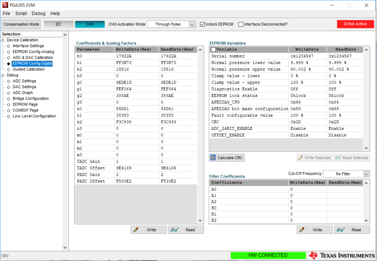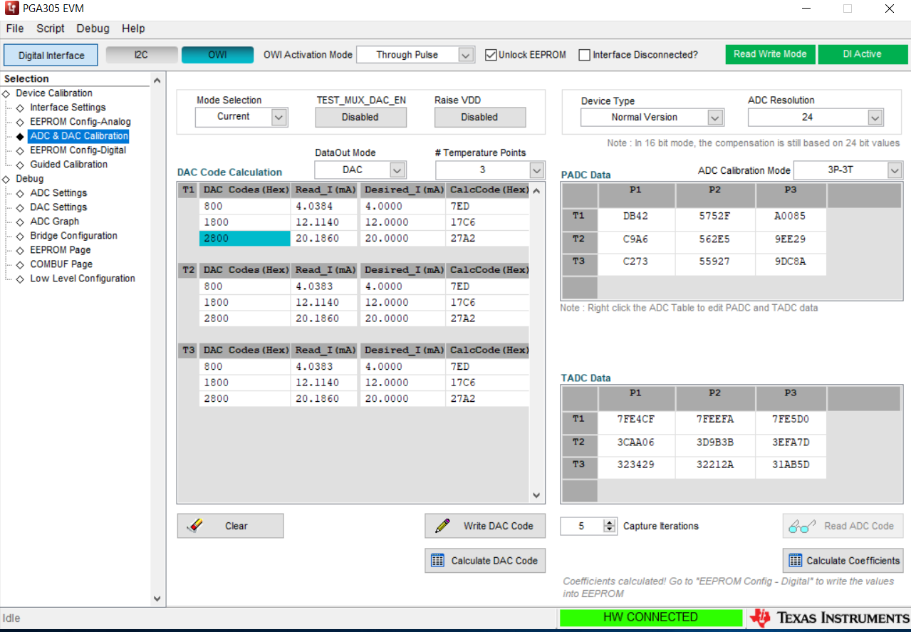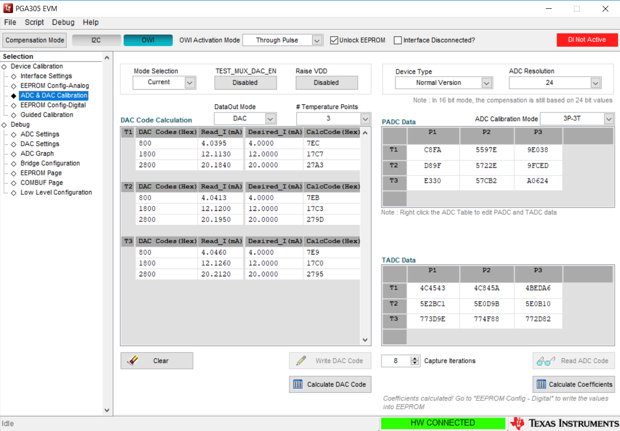 The data collected through temperature, as shown in the attachment, appears to be reasonable. However, after calculating the coefficients using the GUI and downloading to the chip, the full scale output is way off. A screen shot of the coefficients is also attached