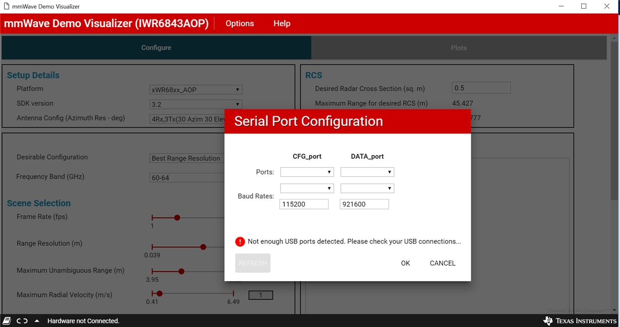 I have installed the mmWave_Demo_Visualizer_IWR6843AOP_1.0.0_installer_win application with gcruntime-7.2.0-windows-installer version. The application is unable to detect the UART COM ports after a system reboot post software installation. Could you please help me resolve this issue?