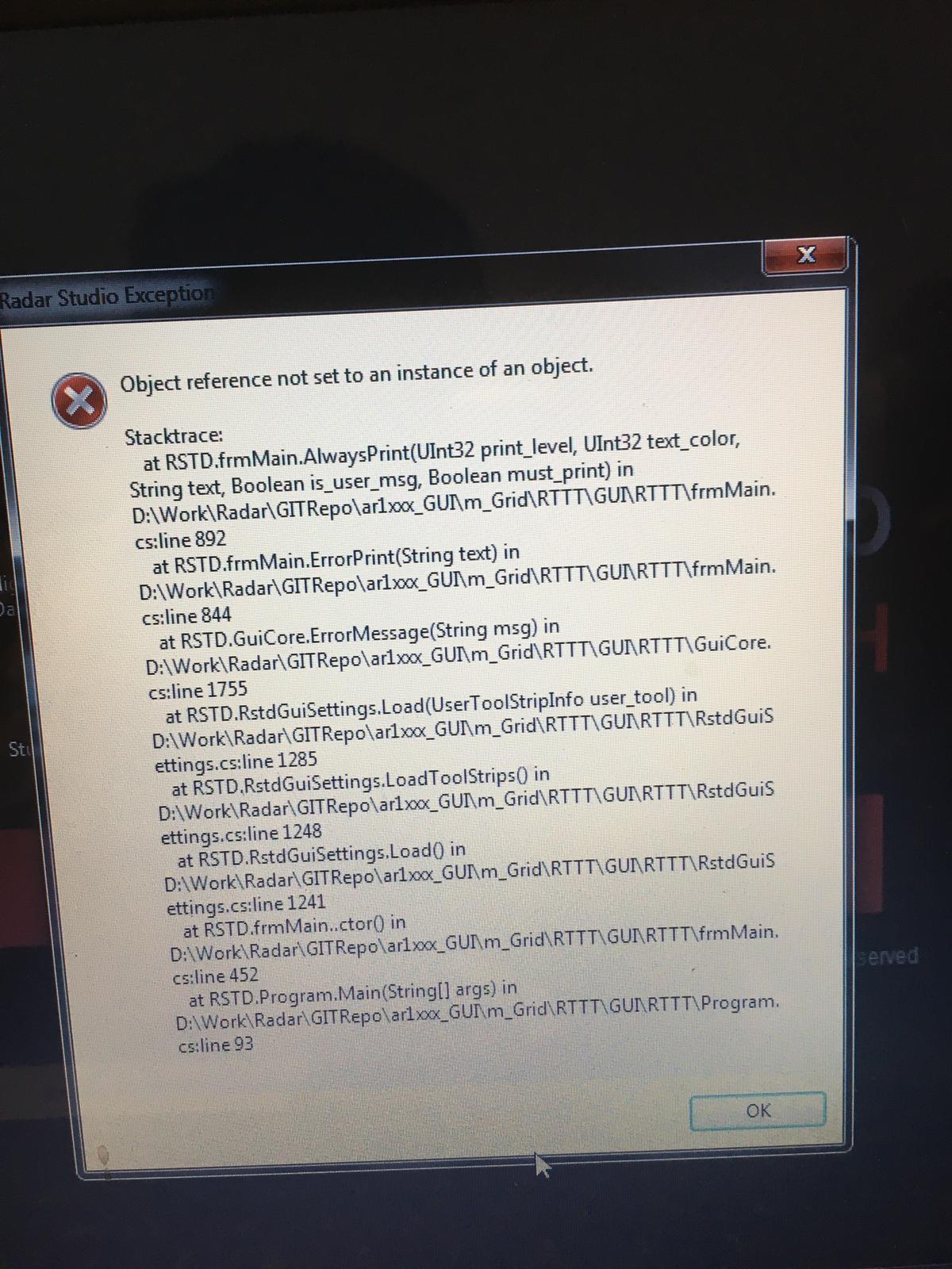 The system had been set up by the previous student. I got a problem when to run the Radar Studio and there is an error as picture below: