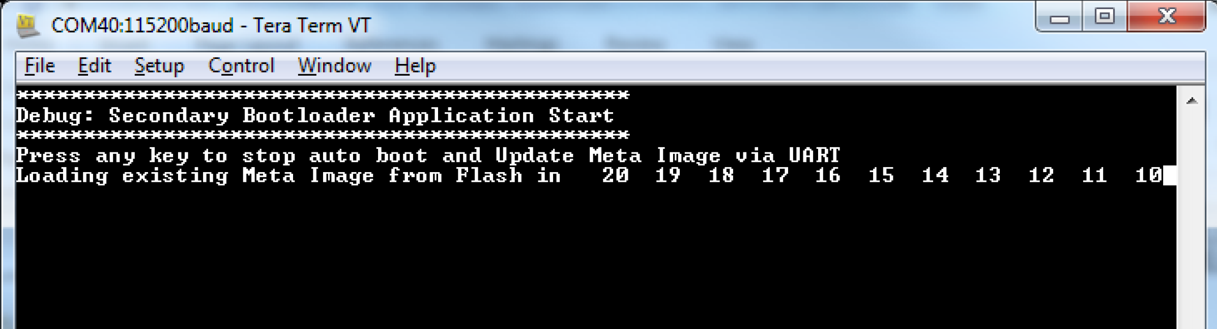 SBL_imageFlasher function download the application meta image over a device peripheral.