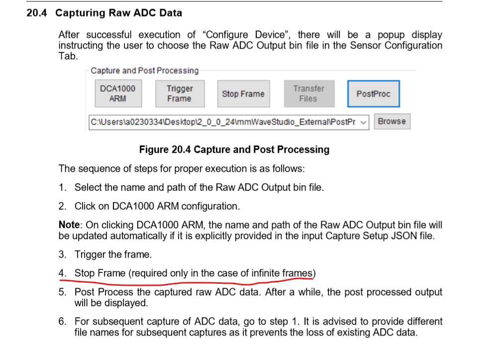 I press "Stop Frame"button in "Sensorconfig"tab to stop radar reception.
