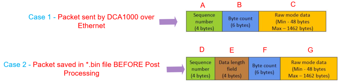 I have been reading quite a few threads on the ADC data related topics and I need some clarification on the raw ADC data format as sent over ethernet and saved as *.bin file BEFORE the post processing. Below is the diagram I prepared for clarification and following are my questions: