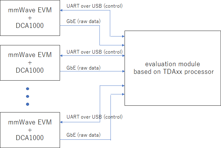 Therefore, I would like to introduce if there is an evaluation kit that can control multiple RADAR EVM+DCA1000EVM and process multiple raw data via GbE.