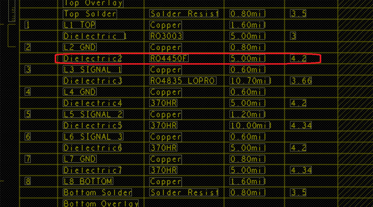 When i check the design files of this demo board , i find that it uses the material of R04450F for the Dielectric 2.