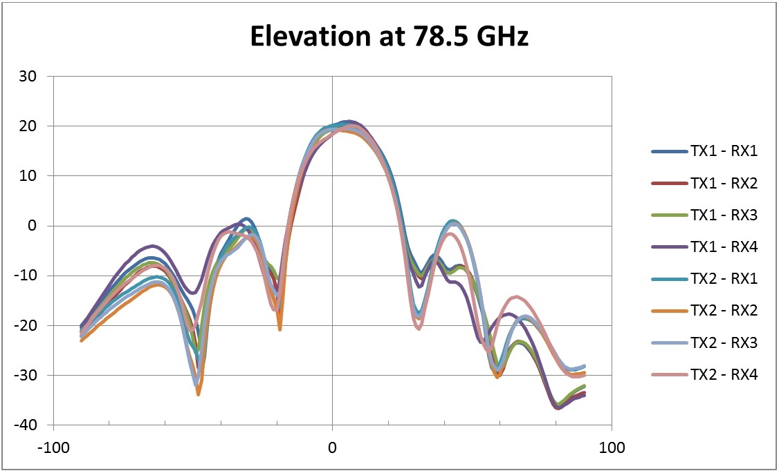 I check some documents and questions in forum about antenna simulation and test. I simulated antenna with provided dimension accoding to PCB document but at 78.5GHz maxmum gain is not at 0 degrees. There is a simulation result showed at 78.5GHz maxmum gain is at 0 degrees. Then I found another figure that radiation pattern offset a litter. And a answer to another question said "at 76 GHz the maximum gain should be at 0 degrees but this may be tilted at higher frequencies". Is radiation pattern of the antenna get maxmum gain at 0 degrees at 76GHz? Figures and the question on forum are attached.
