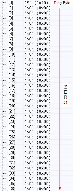 1) The response begins with a DIAG-Byte (0x40) followed by a Number of Null-Bytes. The Count of Null-Bytes varies in response frames from 106 to 124. Should it be a constant count of Null Bytes? Whats the right number of Null-Bytes. In a recent post there was mentioned that null-bytes are sent for about ~120us.