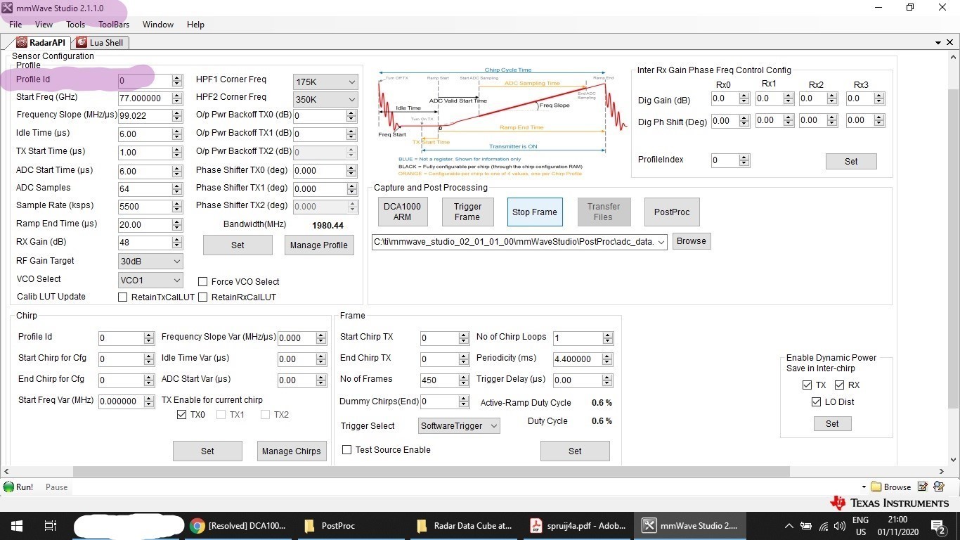 [18:04:14] RSTD.SetVar ("/Settings/Clients/Client 0/Dll" , "C:\\ti\\mmwave_studio_02_01_01_00\\mmWaveStudio\\Clients\\\\LabClient.dll")