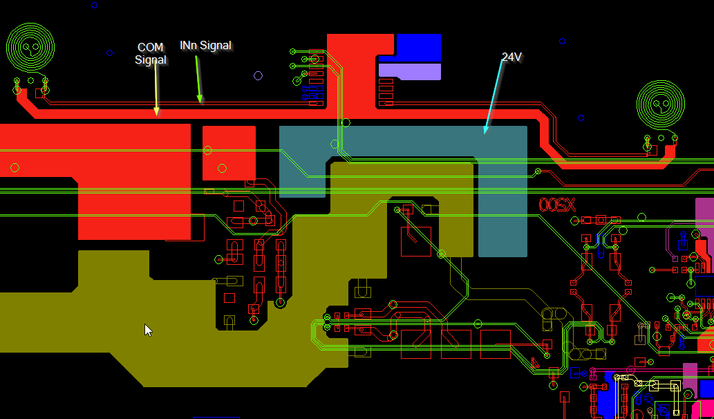 I suspect we have already found a mistake. This concers about the routing of the com and IN signals. I think we should root the signals like this example.