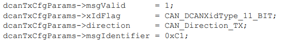 appdcantxdata has an assignment,which is in retVal = CAN_transmitData (txMsgObjHandle, &appDcanTxData, &errCode).