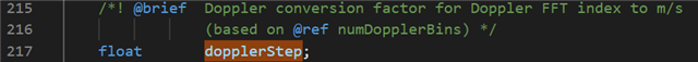 See the outParams->dopplerStep value. From the corresponding .h file: