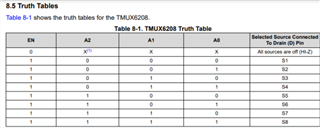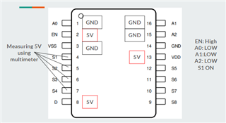 I'm currently testing TMUX6208 on a breadboard and have connected the TMUX6208 chip with the following 5V and GND shown in the figure below.