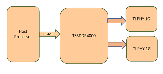 In our application we need to connect two phy with one Host RGMII interface, we are thinking of using MUX TS3DDR4000. Please let me know if this will work. We are using in 24V instrument clauster application. Attached is our BD.