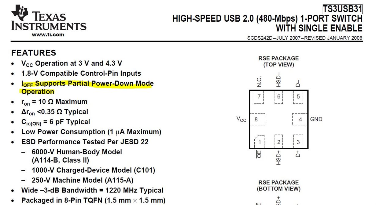 I need a switch for USB D+ D- as below: when lose power it should be high impedance (>1MΩ).