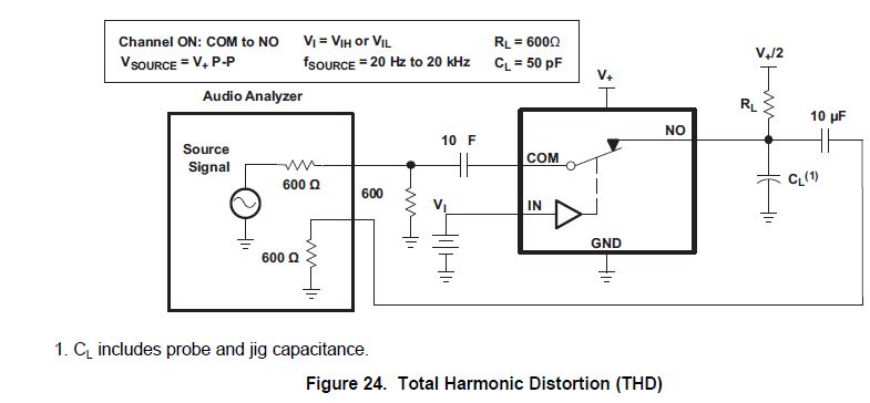 Also, the device TS3A227E has data that measured THD and SNR under the same conditions shown in the figure below.