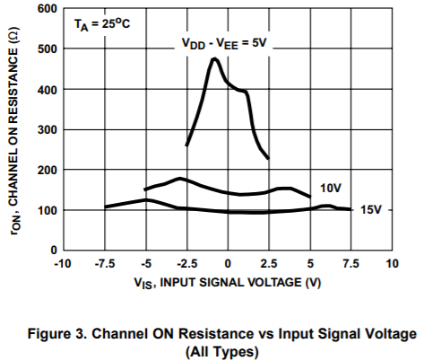 That being said I can help illustrate what affects Ron. Ron is dictated by switch architecture, supply voltage, and input voltage.