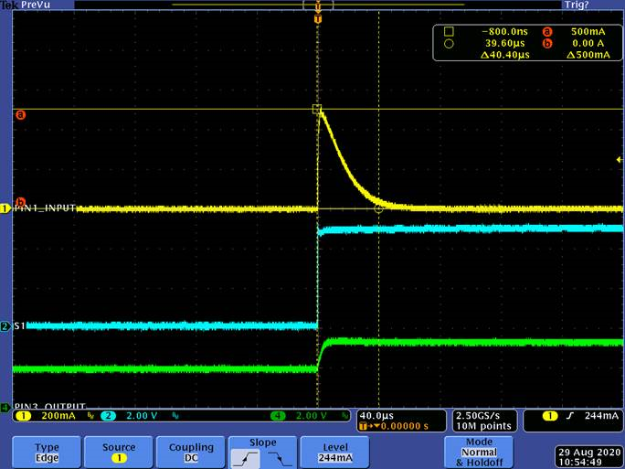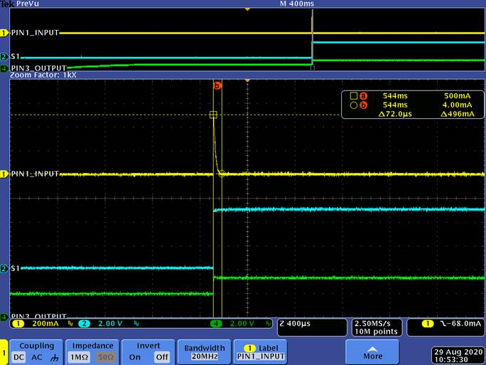 My customer found there has an inrush current pass to mosfet of TMUX1109 when power on.