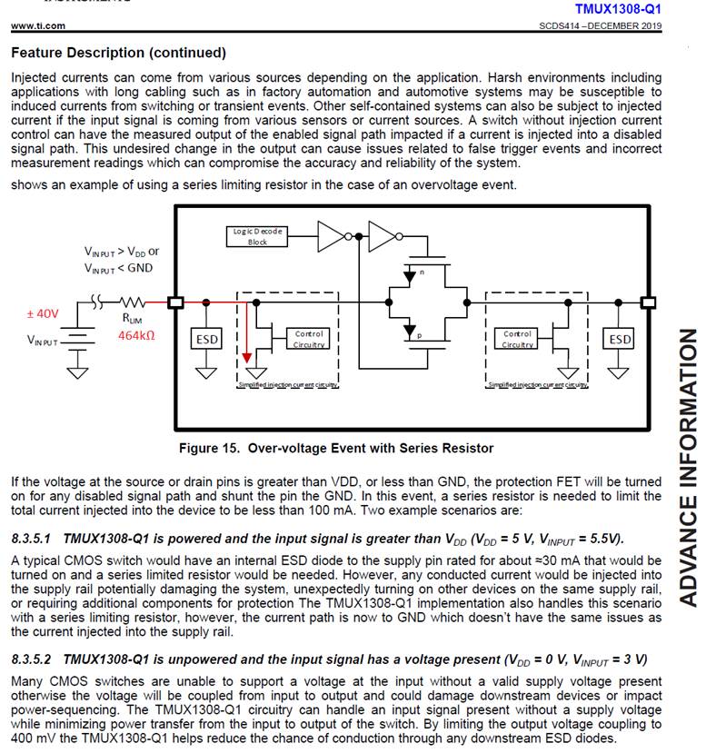 2. if we apply ±40V at the Input pin with a series resistor 464kΩ (with VDD = 5V), the injection current through the pin can be ±86.2µA (< ±50mA specified). Will this have any influence to device functionality or Lifetime ?