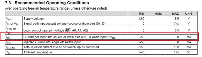 I have some questions regarding the injection current of the TMUX1308-Q1.