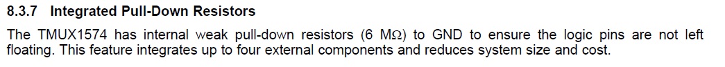 My customer is using Dx pins are pull-up. During power-on and power-down, because logic pin(EN and SEL pin) are pull-down internally, can we consider that the internal switch is always ON state and SxA pins are not in Hi-Z state? How about SxB pins?