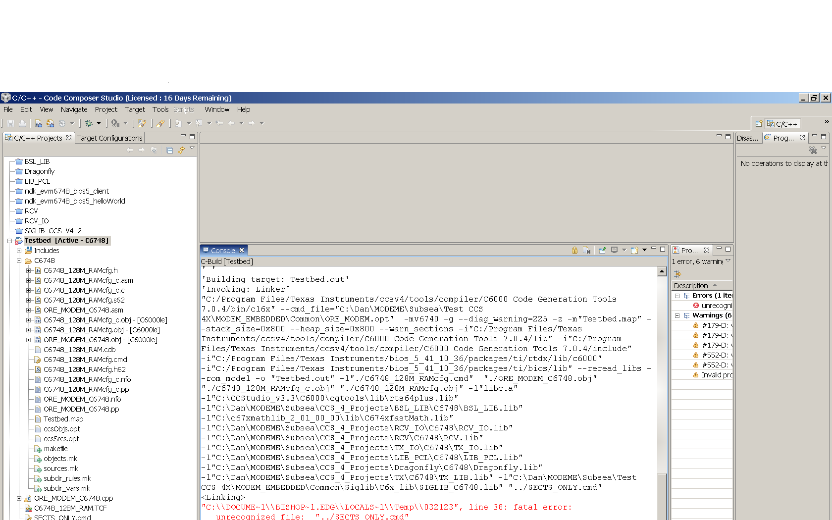 warnings. It seems it does not recognize either the -l (for link option) or the -stack option. Only one warning shows up in the "problems" tab regarding: