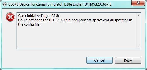 I am cranking my way through the MCSA Tutorial 1. Per its instructions, I have created a new target: C6678 Device Functional Simulator. However, when I attempt the launch the simulator, I get the following error message: