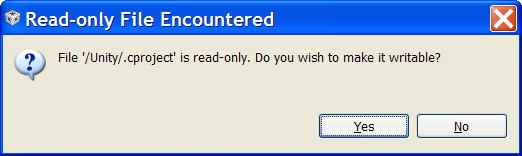 and the funny thing is, I have four projects in this workspace. one has checked out .ccproject, .cproject, .cproject that are writable. the other three are not. but I only got this message for two of the projects. why not the third?
