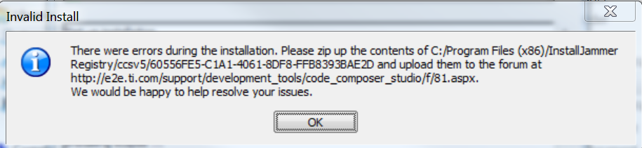 I am getting errors below when installing an offline installer of CCS v5.4.