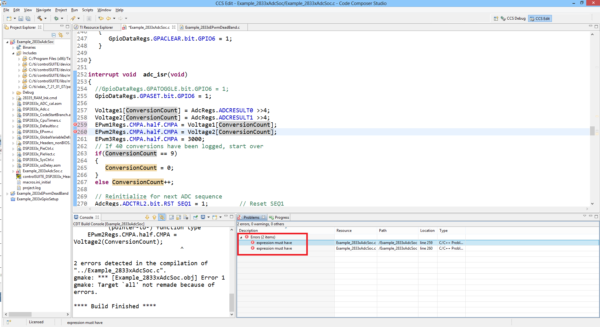 I am new to CCS5. When I try to debug my code and trace the source of problem I notice that unlike other compilers, CCS5 shows Incomplete text in its error log file. e.g. "expression must have ". I tried re-sizing the description text-box but it did not help, the only description I get is "expression must have". I was wondering if there is a way of making the description more complete (and helpful!). Any suggestions is appreciated.