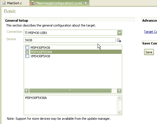 is there any way/workaround/patch to have support for the MSP430F5438A in Code Composer Studio?