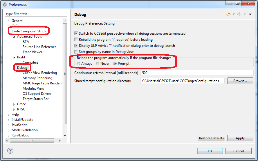 When I am connected to the target, I want to reload the OUT file after a build, if there is a change. By default, this is enabled, but I accidentally hit NO and can not find the setting!
