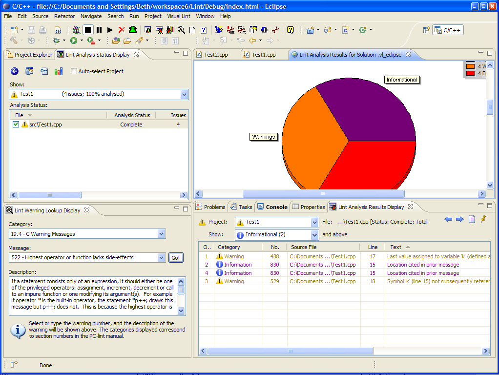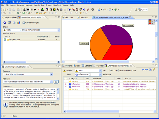 We have recently demonstrated our direct port of Visual Lint for the Eclipse envionment at the ACCU Conference in Oxford, UK - http://accu.org/index.php/conferences and http://www.riverblade.co.uk/blog.php.