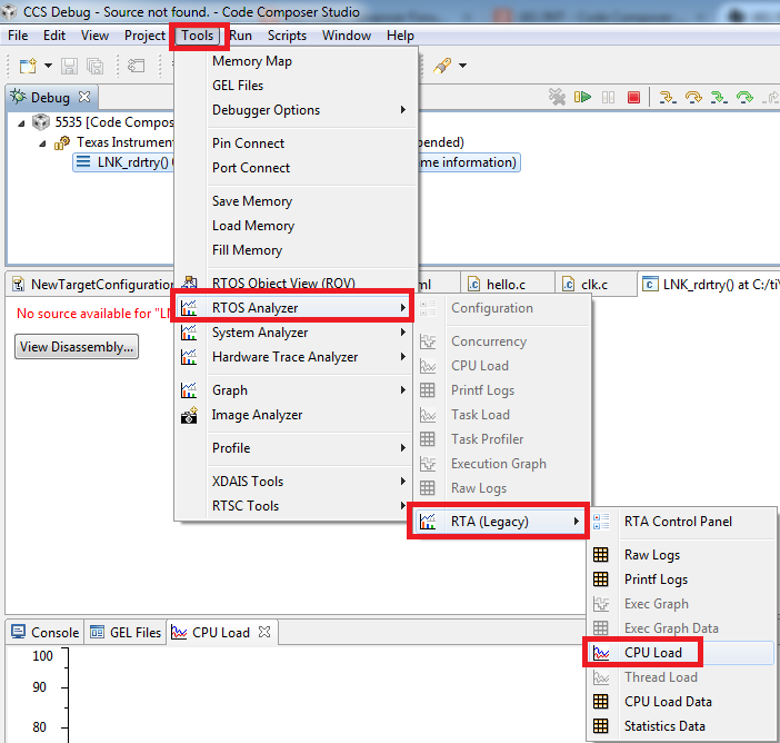 I am new here. I am trying to use CCS to get the RTA to give me CPU load graph and/or CPU load values. Unfortunately every time I get RTA greyed out. I am using CCS 5.2.